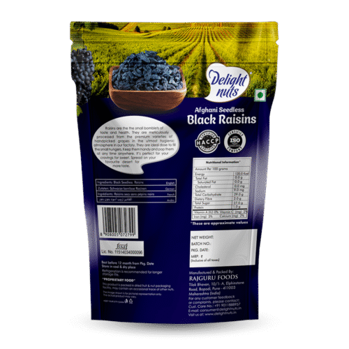 DELIGHT NUTS AFGHANI SEEDLESS BLACK RAISINS