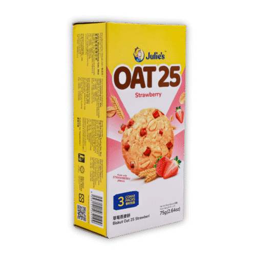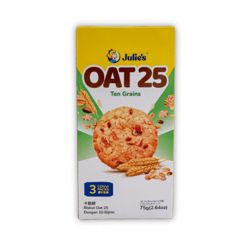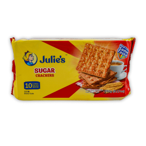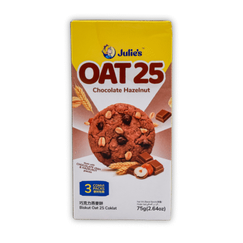 Julie's Banana Sandwich (100g) features crispy golden biscuits filled with smooth, sweet banana-flavored cream. It’s a delightful tropical twist in a classic sandwich biscuit — perfect for kids and adults alike.