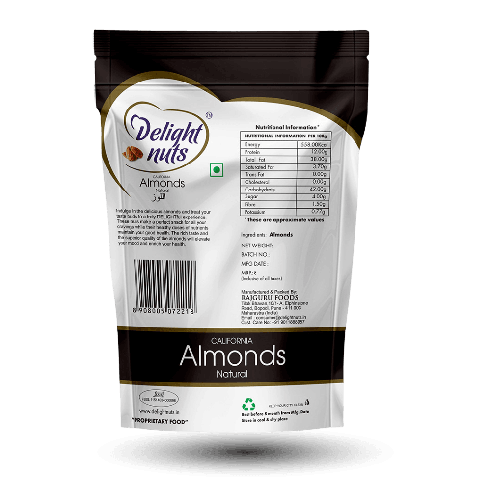 Indulge in the delicious almonds and treat your taste buds to a truly DELIGHTful experience. These nuts make a healthy snack full of nutrients to maintain your good health. The rich taste and superior quality of the almonds will elevate your mood and enrich your health.