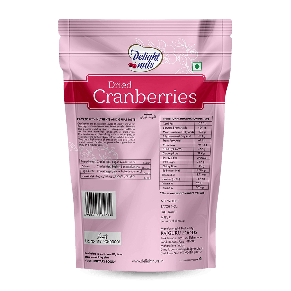 Cranberries are an excellent source of energy, known for their high nutritional values and health benefits. They are also a source of dietary fibre so carbohydrates and fibres are the main nutritional components of Cranberries. Cranberries make a beautiful garnish on cakes, pies, or cocktails. These versatile gems provide a great boost to your low-fat content. Cranberries prove to be a great fruit to enjoy on a regular diet!