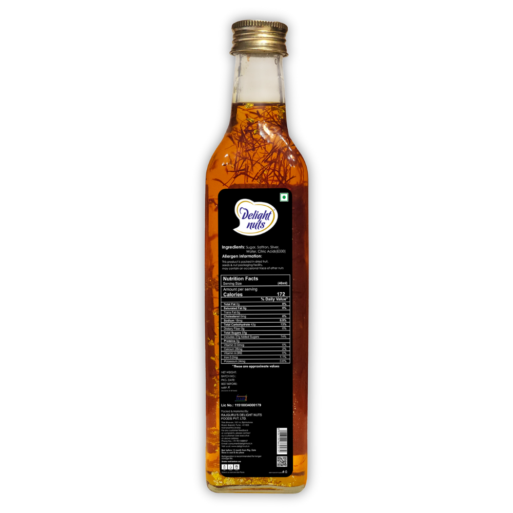 Experience royalty in every drop with Delight Nuts Shahi Kesar Syrup – a luxurious blend of pure saffron essence and rich aromatic sweetness. Crafted with precision and tradition, this syrup is perfect for elevating your beverages, desserts, and festive recipes with an exotic saffron flavor.
