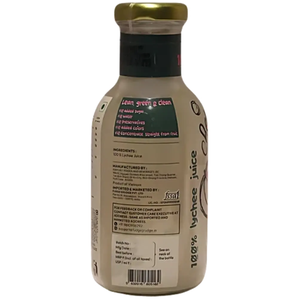 Tropical lychee charm—100% real juice, no sugar, no preservatives, just pure exotic refreshment.
