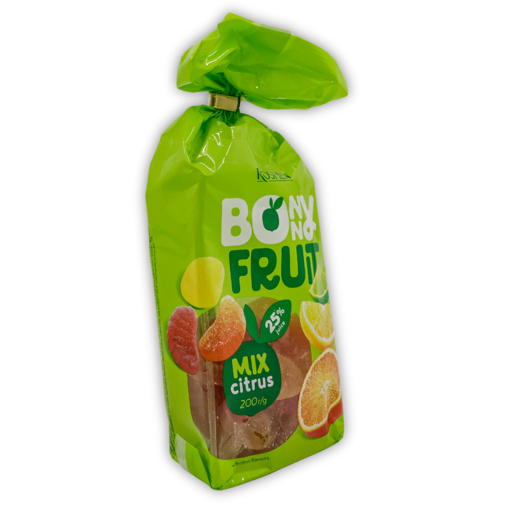 Roshen Bonny Fruit Citrus Mix Jelly with 25% Juice is a refreshing blend of zesty citrus flavors like orange, lemon, lime, and grapefruit. Made with 25% real fruit juice and natural pectin, these chewy jellies offer a tangy, juicy burst in every bite. Perfect for a sweet, citrusy treat anytime!
